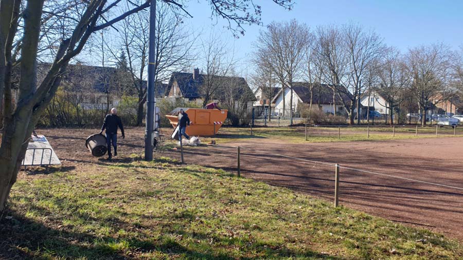 Der Aufruf zur Aufräumaktion am Samstag, den 13. März 2021, war ein toller Erfolg gewesen. Detlef Horsch, der Platzwart und Greenkeeper TuS Hochheims, wurde unterstützt von Andreas Großmann, Roland Trapp, Thorsten Jung und Marcus Degünther.