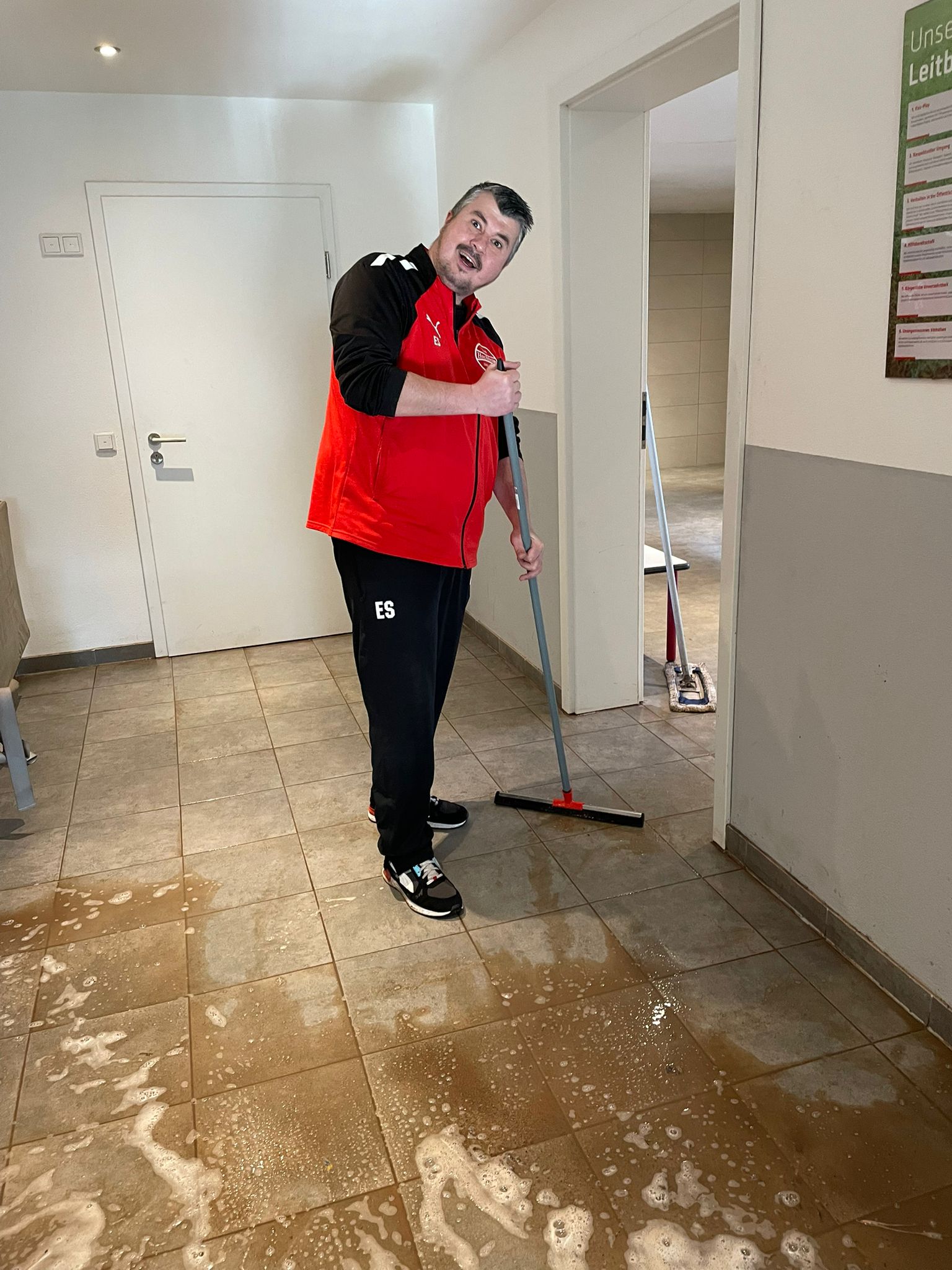 Am Samstag, den 08.02.2025, fand mit einigen Freiwilligen der Fußball-Abteilung eine Grundreinigung des Kabinentrakts statt. Bei der mehrstündigen Aktion konnten einige Erfolge erzielt werden: Boden, Wände und sogar die Decken wurden sowohl mit dem Dampfstrahler als auch händisch reinigt. Auch die Sitzbänke wurden von allen Seiten gründlich gewischt.