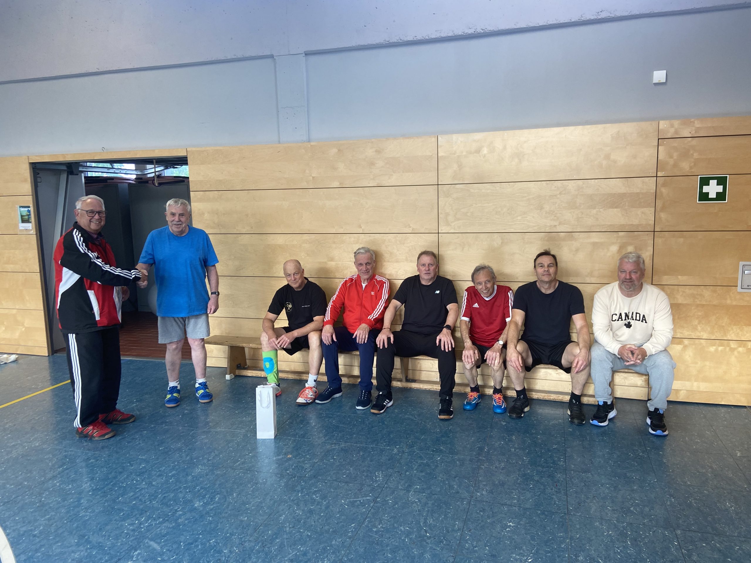 Er ist somit mit Abstand unser ältester Aktiver und fast immer da. Seit Jahren ist er der „Zeugwart“, so hieß es früher und Verwalter von Netz und Ball. Die Sportkameraden nahmen dies zum Anlass, ihm herzlich mit einem Weinpräsent und einem bildlichen Blatt von Erinnerungen zu gratulieren und ihm alles Gute zu wünschen.